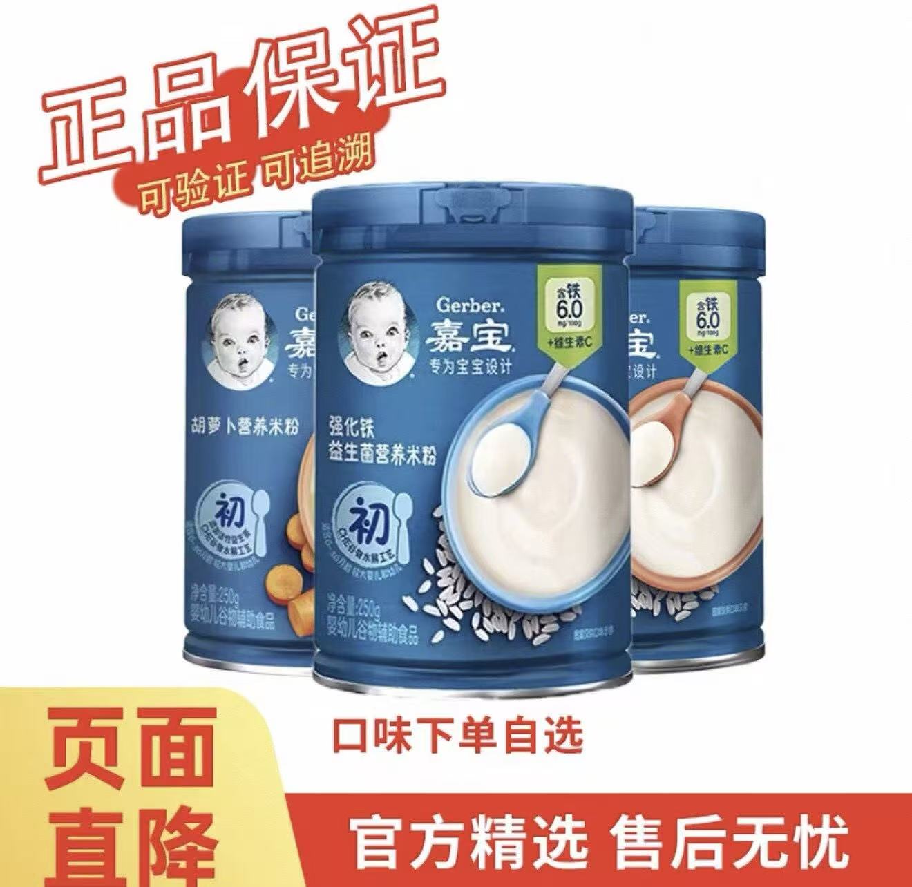 Gerber嘉宝营养米粉250g克*3罐高蛋白米粥婴儿宝宝辅食米糊米粉
