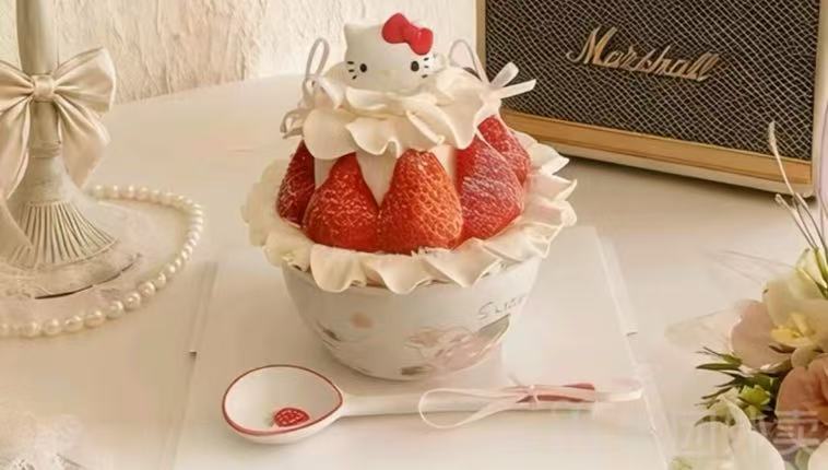 冬日限定【4英寸陶瓷碗】kitty猫草莓碗蛋糕