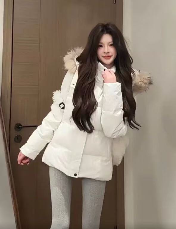 御雪飞羽绒服女新国标90%白鸭绒2025年收腰短款大毛领小个子加厚